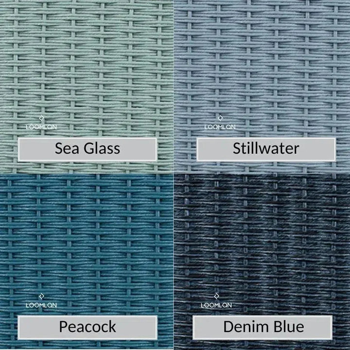 This American-made Reflections collection is designed to live outdoors with Lloyd Loom wicker woven over rustproof aluminum frames. The wicker is made out of woven cellulose strands guaranteed to survive changing weather conditions.