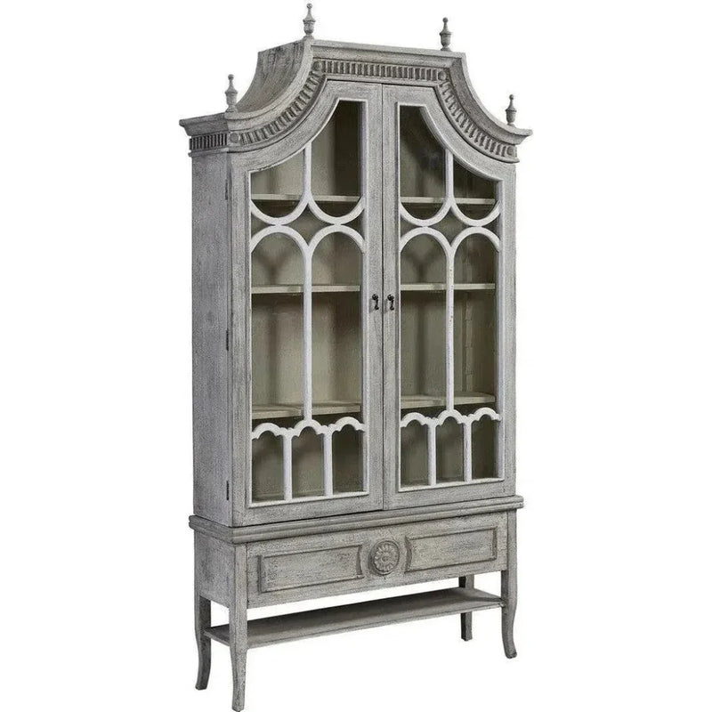Take a risk, remove the finials for a more simplified look and make a statement with this stunning piece. Don't miss the opportunity to add a touch of femininity and elevate your interior design with our Reims Cathedral Arched Cabinet.