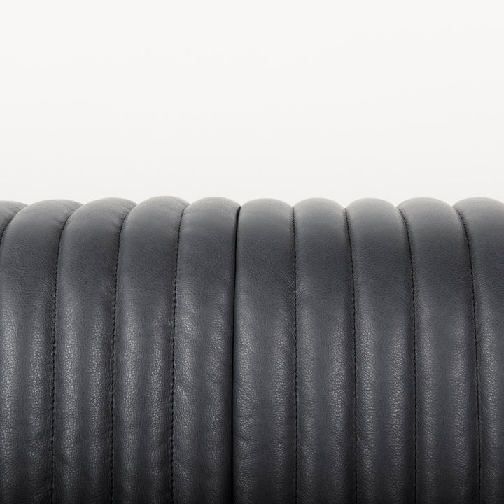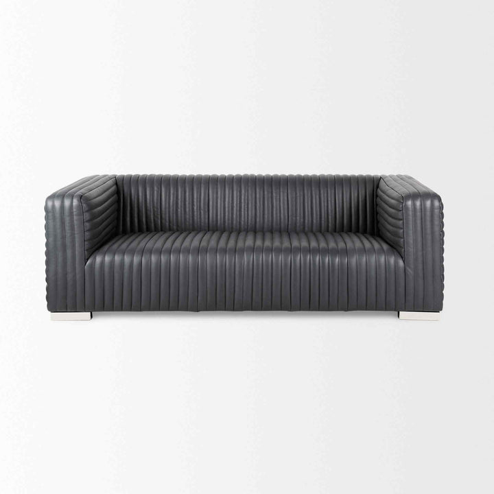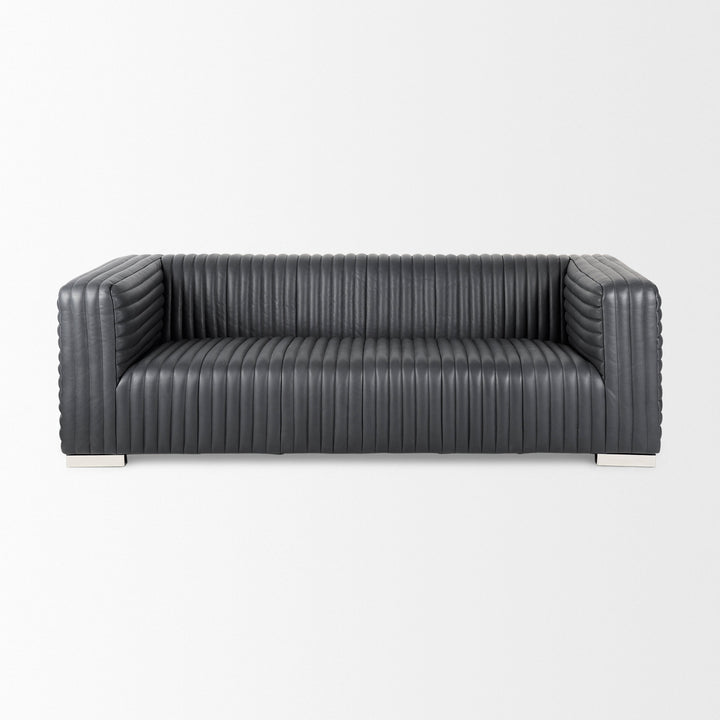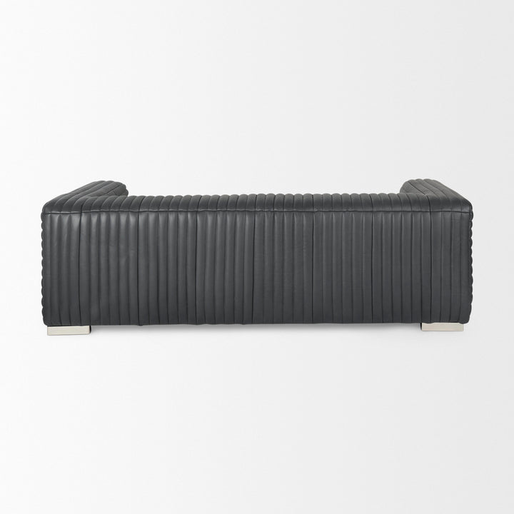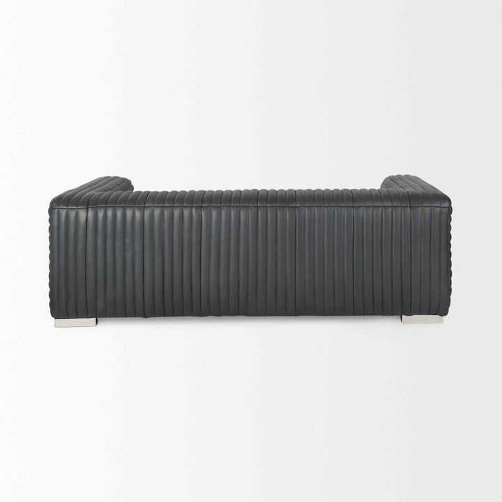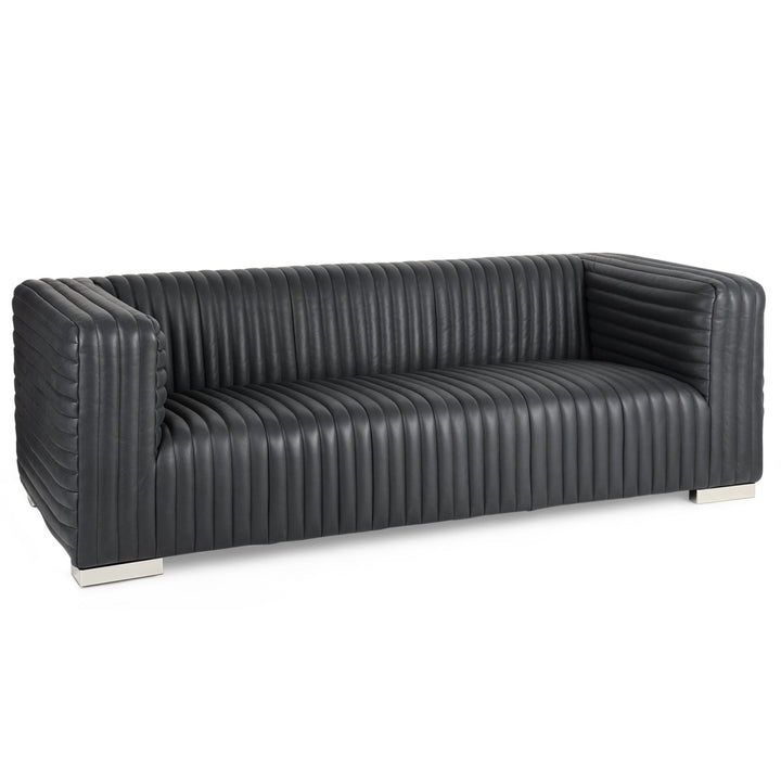 The Ricciardo Black Leather Sofa is a perfect blend of modern design and timeless elegance. Crafted with top-grain black leather, it offers a plush yet firm seating experience, making it an ideal centerpiece for any living room. The sofa's ribbed texture adds a touch of sophistication, while its deep seating allows ample space to relax and stretch out. The low-profile metal legs not only provide stability but also give the sofa a contemporary look that complements various decor styles.
