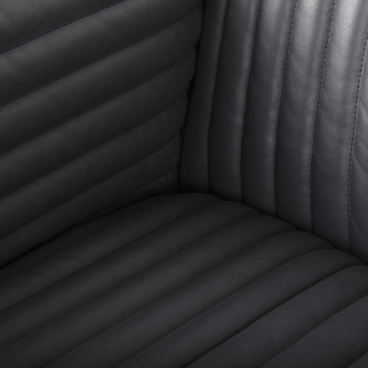- The Ricciardo, featuring a firmly stuffed seat and wide armrests wrapped in top-grain black -colored leather, not only offers unparalleled comfort but also makes for a visually enticing addition to any space and setting.