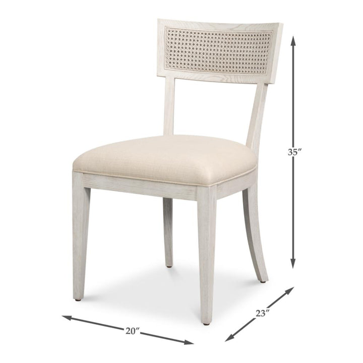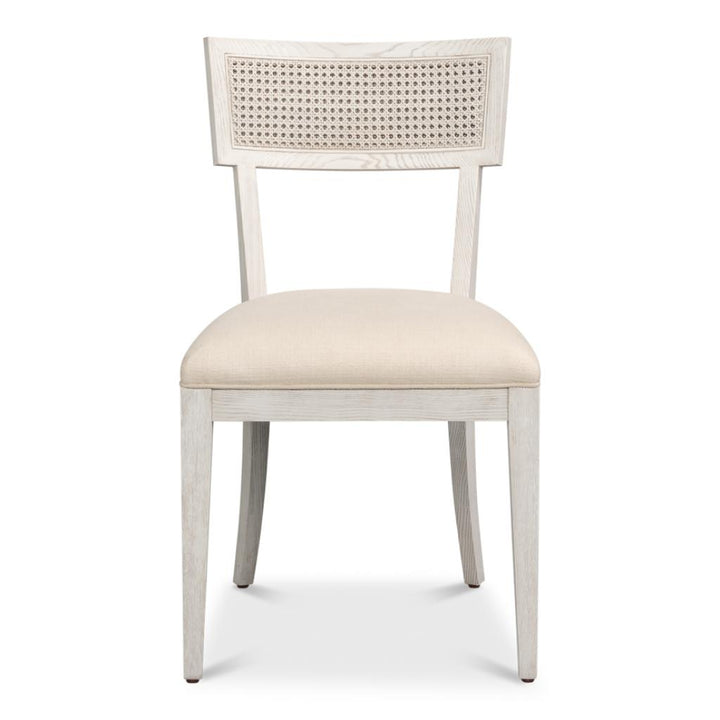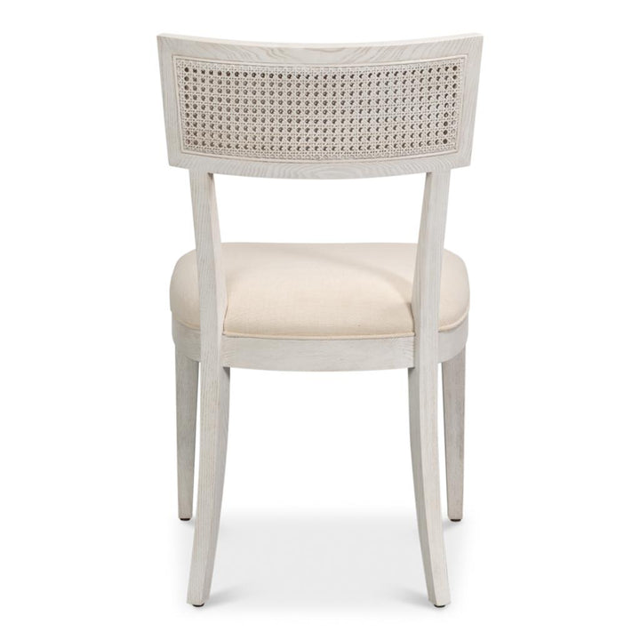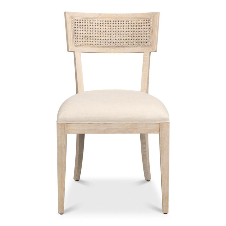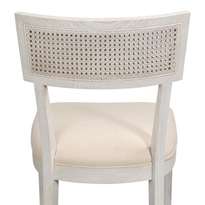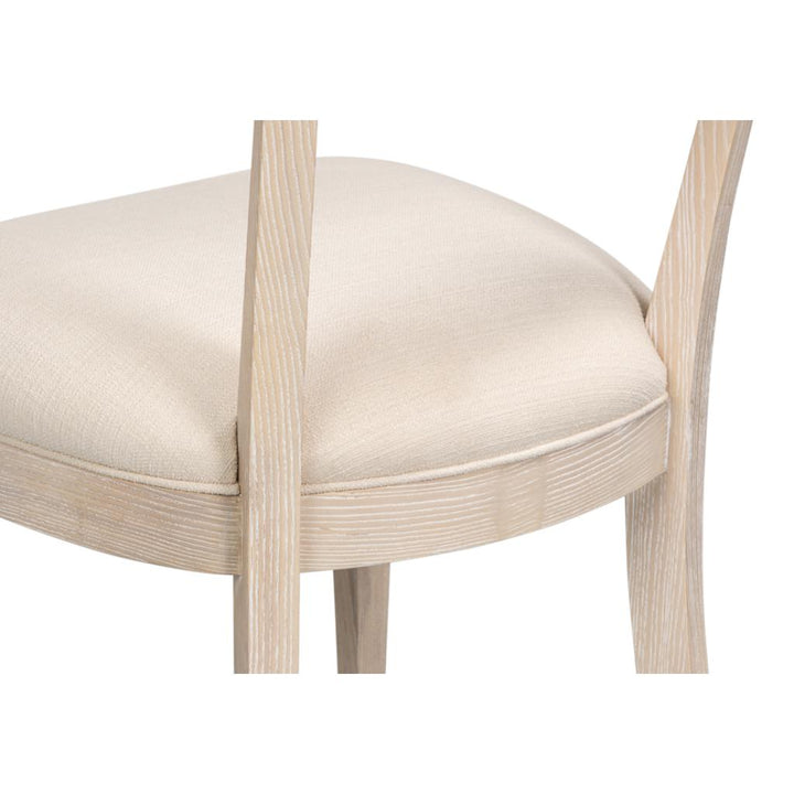 The Ridge Dining Chair combines contemporary style, comfort, and functionality, making it a perfect addition to any modern dining area. Crafted with a sturdy ash wood frame in a bleached oak finish, this chair offers durability and a refined, natural look. The seat is upholstered in soft cream linen performance fabric, providing plush comfort, easy maintenance, and long-lasting quality. Its armless design allows for versatile seating and effortless placement around any dining table, saving space while maintaining a clean, elegant appearance. Blending white and beige tones, the Ridge Dining Chair complements a variety of décor styles, bringing a touch of sophistication and warmth to any home.