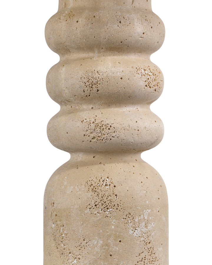 The Rocco Accent Table brings a touch of elegance and modern design to any space. Crafted with faux travertine, it offers the warm, natural look of stone without the weight. The table is made from a blend of stone powder and composite, resulting in a sturdy yet lightweight piece. Its beige color complements a variety of interior styles, from classic to contemporary, adding a sophisticated touch to your living space.