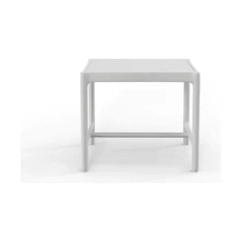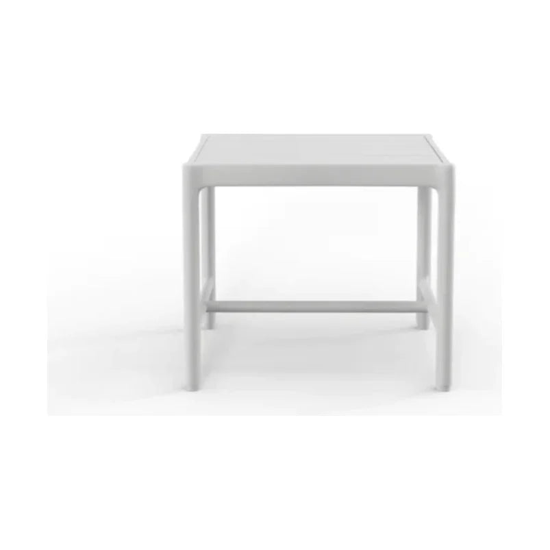 The Sabbia End Table blends mid-century design with modern materials, making it a perfect fit for any contemporary home. Inspired by the natural tones of stone, this table features a satin white aluminum finish that adds a touch of elegance to any room. Its minimalist design, with four sturdy legs and horizontal support bars, ensures stability and style in equal measure. The table's flat top provides ample space for your essentials, whether it's a lamp, book, or decorative piece.