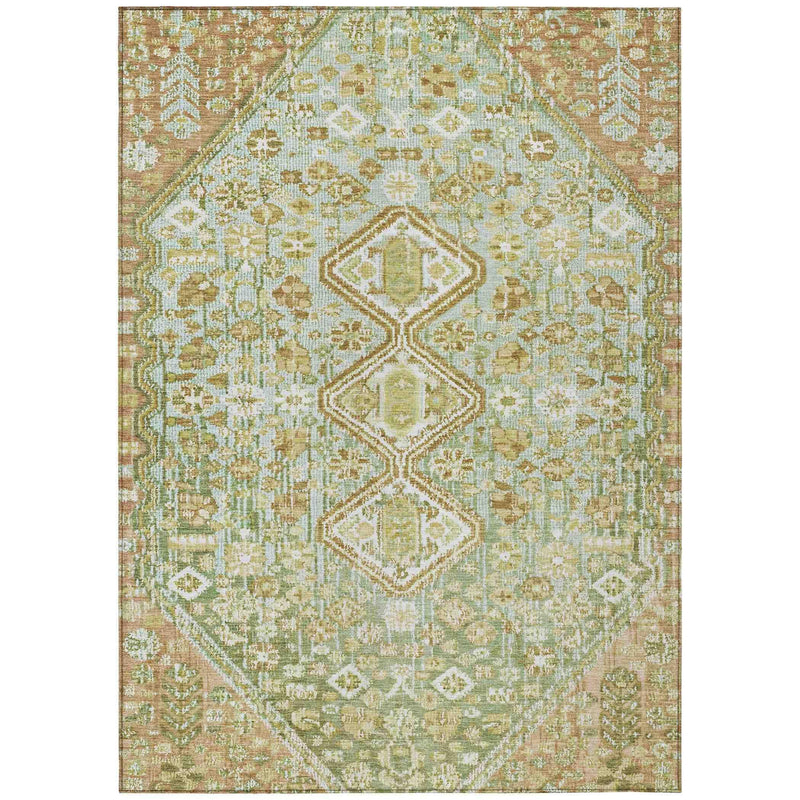 Transform any space with a touch of elegance and practicality. This transitional rug showcases a captivating Aztec pattern, featuring three diamond medallions intertwined with intricate motifs. Its vibrant green color adds a lively touch to your decor, while the UV stabilization ensures it remains vibrant under both indoor and outdoor settings. Perfect for families and pet owners, this rug is designed to withstand the rigors of daily life, thanks to its machine washable feature and non-skid backing. The ultra-thin profile seamlessly integrates into any room, providing both style and function without the need for an additional rug pad.