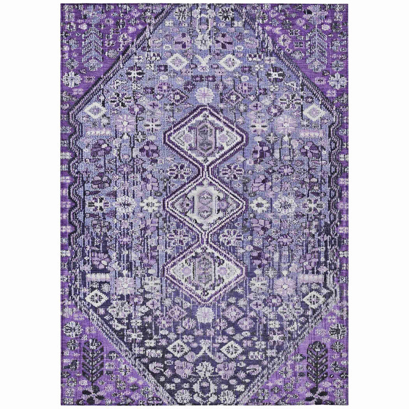 Step into style with the Saelain Purple Washable Indoor-Outdoor Rug. This transitional rug is beautifully crafted with three diamond medallions interwoven with intricate motifs and an eye-catching Aztec pattern. Its purple hue effortlessly complements various decor styles, adding a vibrant touch to any space. Whether placed indoors or outdoors, the rug’s UV stabilization ensures its color remains vivid, making it ideal for patios, living rooms, or any area where you wish to make a statement.