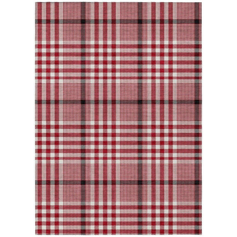 Transform your living space with a beautiful blend of modern and traditional styles through this unique area rug. The design features a stunning plaid pattern intertwined with a multi-sized checkerboard, adding depth and texture to any floor. Crafted from high-quality polyester, the rug is both durable and stylish, making it a perfect addition to any home. Its vibrant red color is UV stabilized, ensuring long-lasting appeal whether used indoors or outdoors.