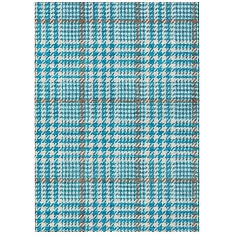 Enhance your living space with this versatile rug, perfect for both indoor and outdoor use. The Samira Teal Washable Rug features a distinct plaid pattern combined with a multi-sized checkerboard, offering a seamless blend of modern and traditional styles. This unique design adds depth and texture, making it a stylish addition to any space. Crafted from durable polyester, it is both family and pet friendly, ensuring a practical choice for busy households. The rich teal color brings a vibrant touch to your decor, while its UV stabilization prevents fading, keeping it looking fresh in various environments.