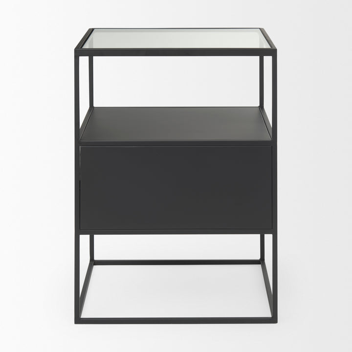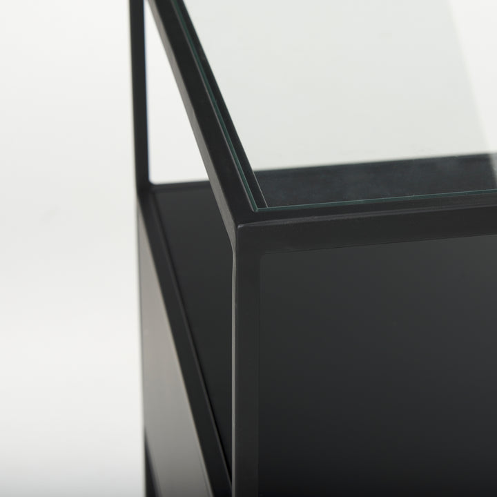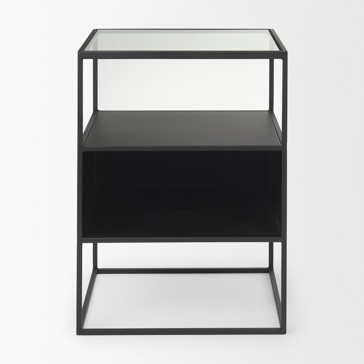 Samson Glass Top Side Table Minimalist Black Finish Features: