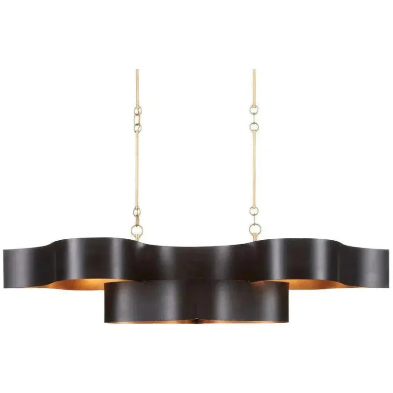 Satin Black Gold Leaf Grand Lotus Black Oval Chandelier Features: