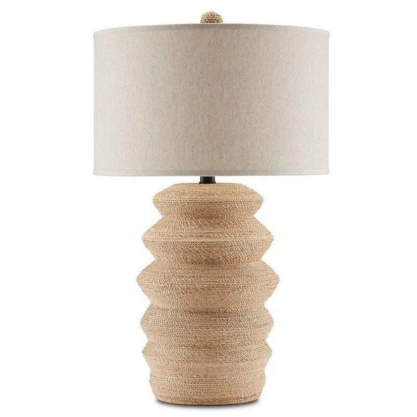 The Kavala Table Lamp has an accordion shape that creates a challenge for those seamlessly wrapping it in abaca rope, but that didn't stop the talented artisans who created it from doing just that. The body that serves as the structure for the rope is made of terracotta. A round rope-wrapped finial fastens the natural linen shade to this rope lamp that was inspired by statement pieces among our accessories.