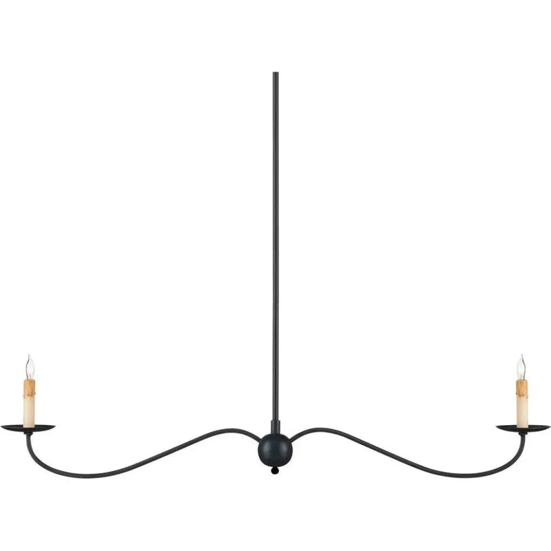 Indulge in elegance with the Saxon Black Linear Chandelier. Gracefully extending its undulant arms, it exudes a sense of weightlessness. The Zanzibar black finish and slender lines harken back to a bygone era and make it a perfect choice for modern farmhouse interiors and above kitchen islands. Its rod-hung frame adds a touch of modernity to this timeless piece.