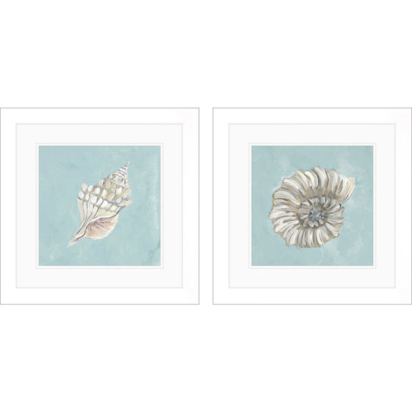 Transform your living space into a serene coastal retreat with this exquisite wall art set. The Seashell A and B S/2 Coastal Wall Art Set features two stunning pieces that beautifully capture the essence of the ocean. Each piece showcases delicate seashell designs against a calming turquoise backdrop, creating a striking contrast that draws the eye. The artwork is double-matted in white, enhancing the elegance of the seashell images and adding depth to the overall presentation.