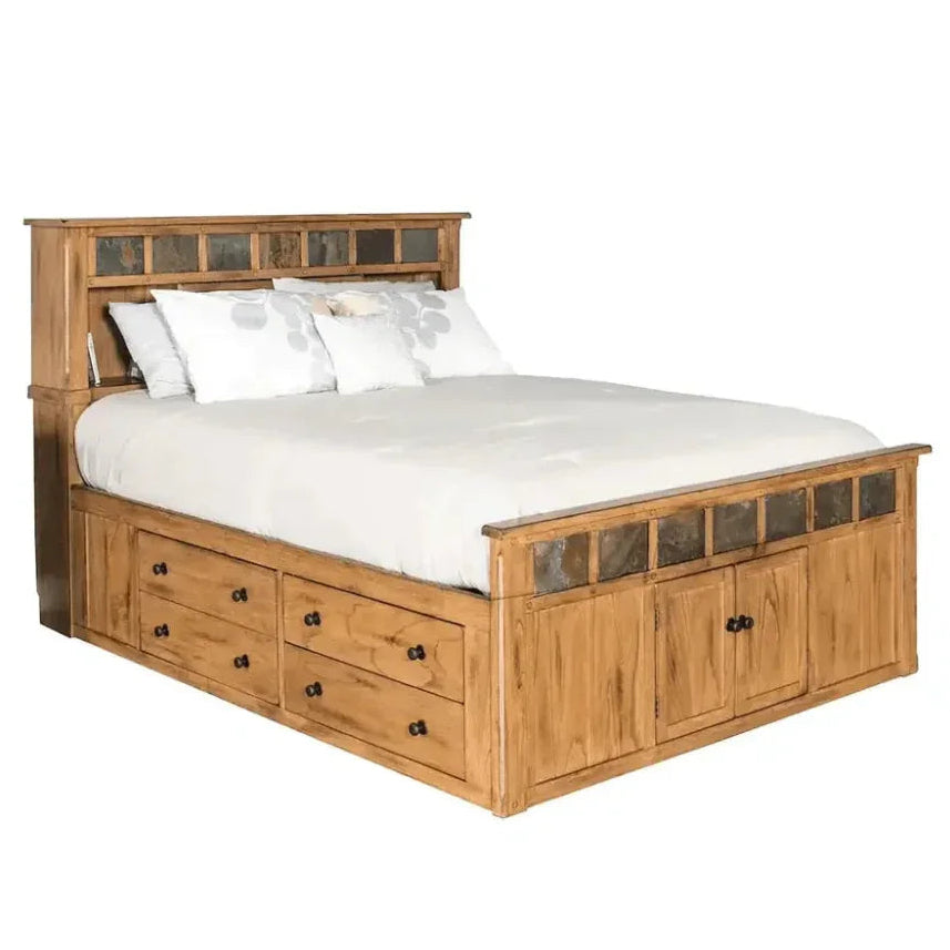 Experience the perfect blend of functionality and style with our Sedona Wooden Bed with Storage. This versatile bed frame offers 2 extra deep storage drawers, 4 regular drawers, and a long storage space under the bed, making it perfect for decluttering your bedroom. The natural beauty of the mindi wood adds a charming cottage or farmhouse appeal, while the bookcase headboard and hidden storage space offer added convenience. With free shipping and easy assembly, this is a top seller for a reason.
