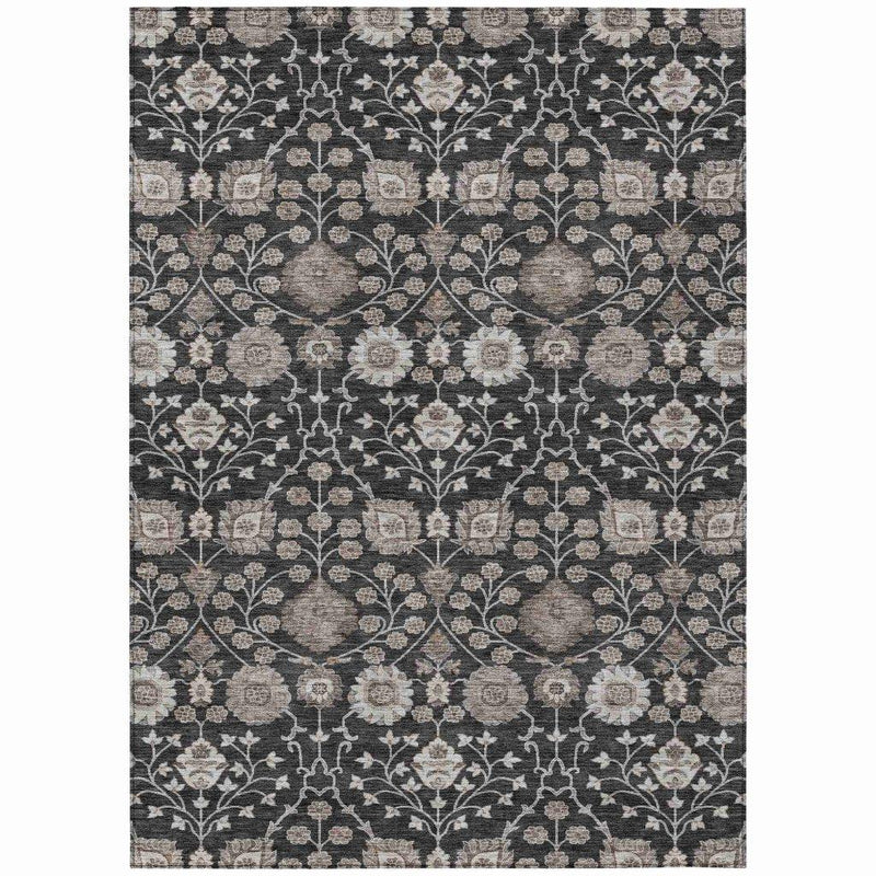 Experience the elegance and functionality of the Selma Black Washable Indoor-Outdoor Rug. This versatile rug combines a vintage pattern with a modern twist, seamlessly blending traditional and transitional styles. Made from durable polyester, it features UV stabilization, ensuring that its rich black color stays vibrant whether used indoors or outdoors. Its ultra-thin design allows for easy placement and handling, making it perfect for high-traffic areas and homes with kids or pets.