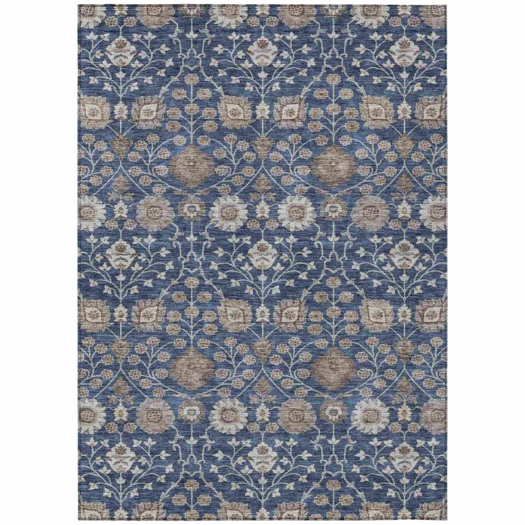 The Selma Blue Rug is made of durable polyester, offering long-lasting performance. With a floral pattern in a rich blue hue, it adds a touch of elegance to any setting. The incorporated non-skid backing provides stability, making it safe for various floor types. This feature, combined with its stain-resistant nature, ensures the rug remains a practical choice for high-traffic areas. Available in multiple sizes, it accommodates diverse space requirements, from cozy nooks to expansive outdoor patios.