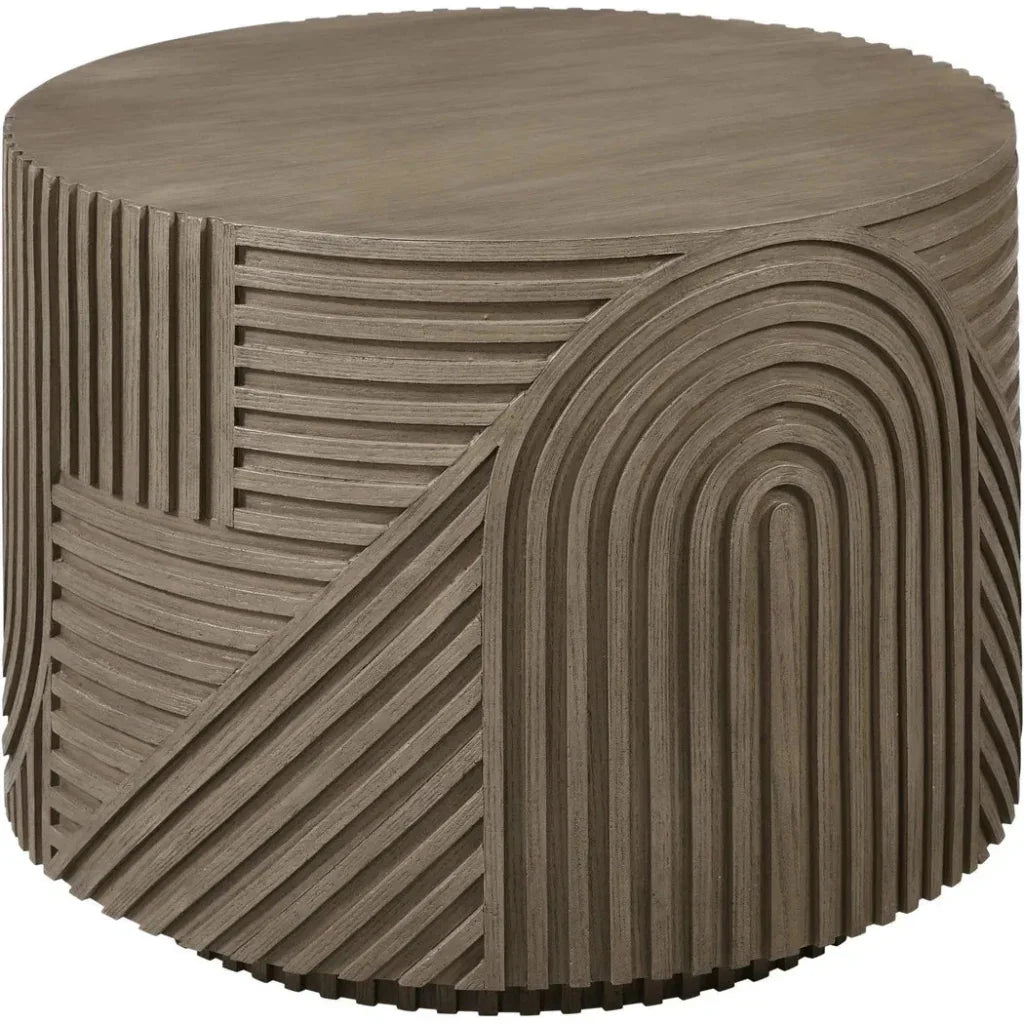 Serenity Textured Round Drum Table - Brown Outdoor Accent Table Features: