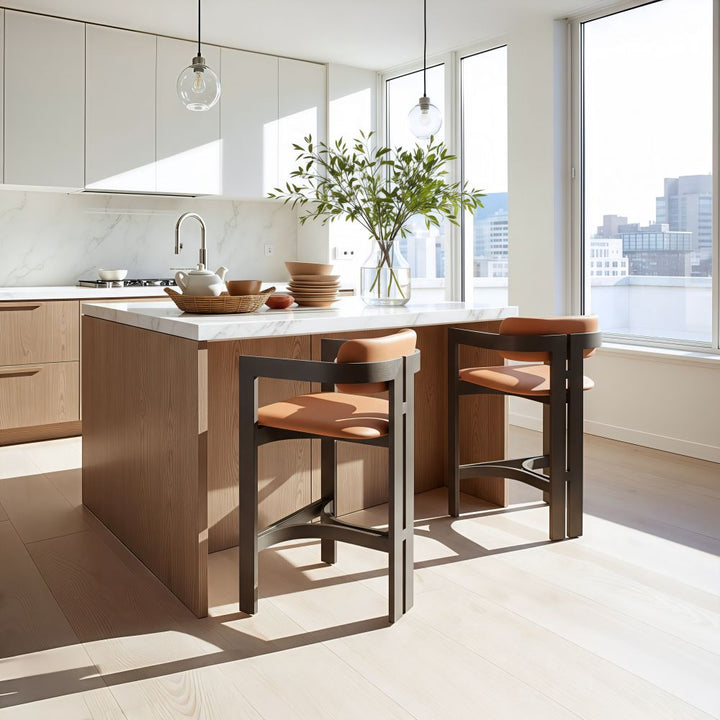 Shaili Counter Stool Brown Modern Faux Leather Design Features: