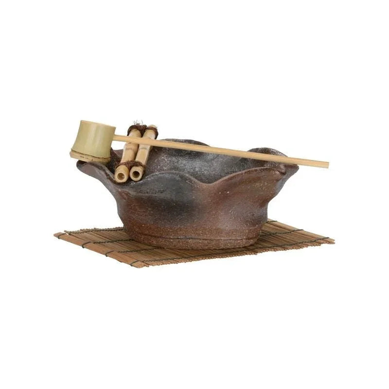 The Shokubutsu Ao Vessel is a beautiful piece from the Shiga collection. It is made using traditional methods in one of the six ancient kilns in Japan. Its elegant design is perfect for small botanicals, adding a touch of nature to any space. The vessel's black color offers a timeless and classy look, suitable for various home interiors. Each piece is crafted with care, ensuring it stands out as a unique handmade item. It is both functional and decorative, making it a great choice for plant enthusiasts and decor lovers alike. This vessel comes with a bamboo trivet, providing a stable and stylish base.