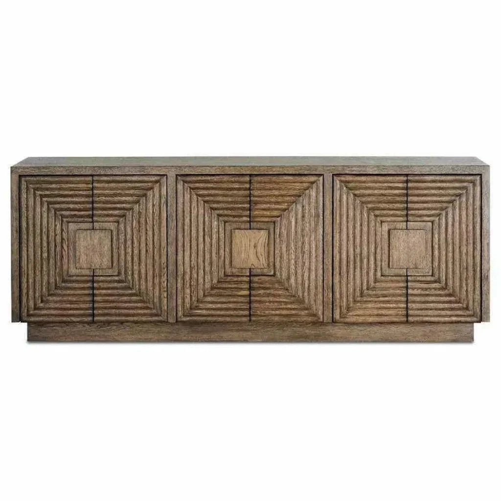 84" Cerused Brown Carved Morombe Distressed Cocoa Credenza Sideboard Features: