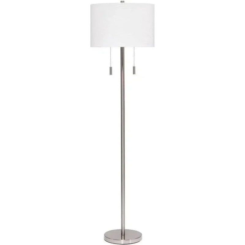 Effortlessly elegant and timeless, the Silver Iron Lincoln Floor Lamp requires no extra adornments. Its masterful craftsmanship and inclusion of a second bulb and three way pull chains allow for customizable lighting options. Complete with a classic white linen drum shade and coordinating silver metal finial, this lamp adds a touch of sophistication to any room. The Lincoln floor lamp's clean lines and expert craftsmanship speak for themselves. With the addition of a second bulb and three way pull chains, you can easily adjust the light levels to your liking. The included white linen drum shade and silver metal finial add a touch of refinement to any space. Trust in the enduring style and quality of our Silver Iron Lincoln Floor Lamp.
