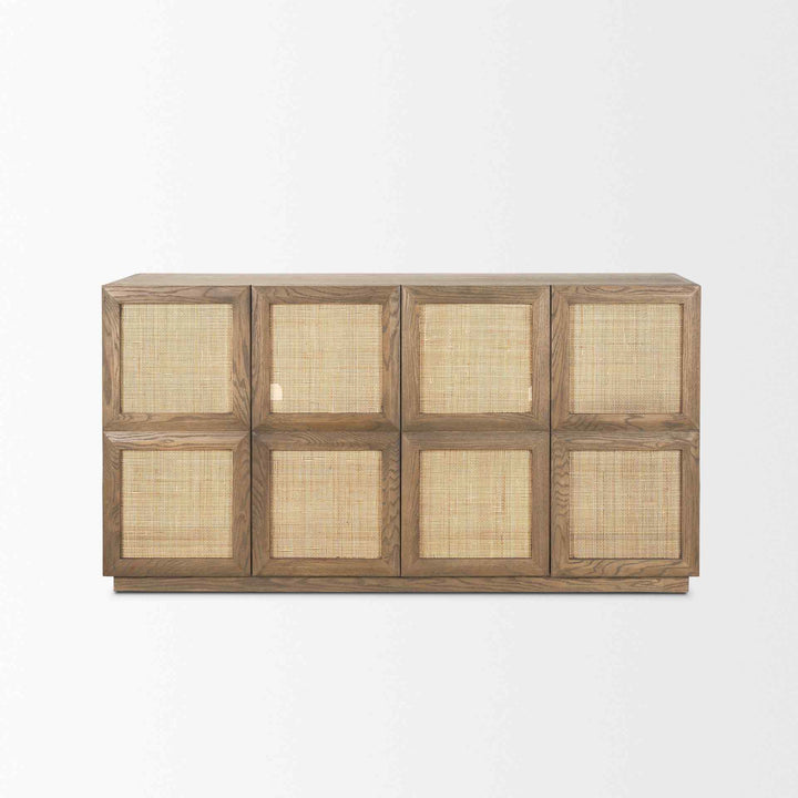 Sina Four Doors Wood Sideboard With Rattan Accents Features: