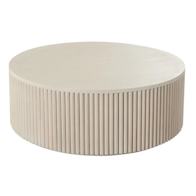 Beyond its visual appeal, the Siren Cocktail Table stands out for its practicality. Its pedestal base not only lends character but also ensures stability, making it a reliable centerpiece in your living area. Easy to maintain and timeless in design, this table is an ideal choice for those seeking to enhance their home with a piece that marries form and function. With its unique fluted design and natural finish, the Siren Cocktail Table is more than just a table; it's a statement piece that adds warmth and personality to any room.