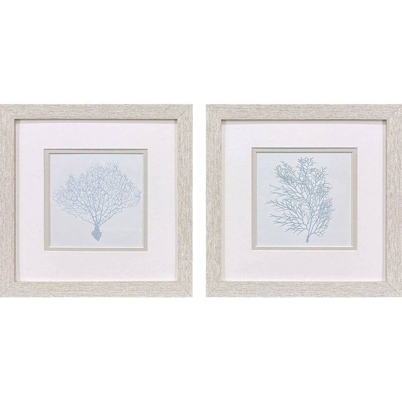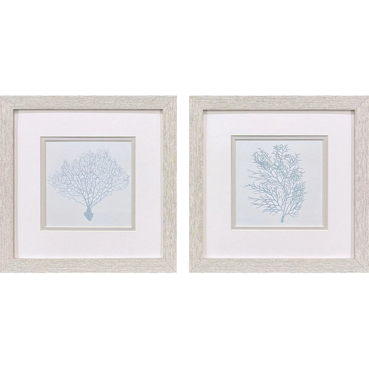 Soft Coral S/2 Coastal Blue Prints With Glass Front Framed Wall Art Features: