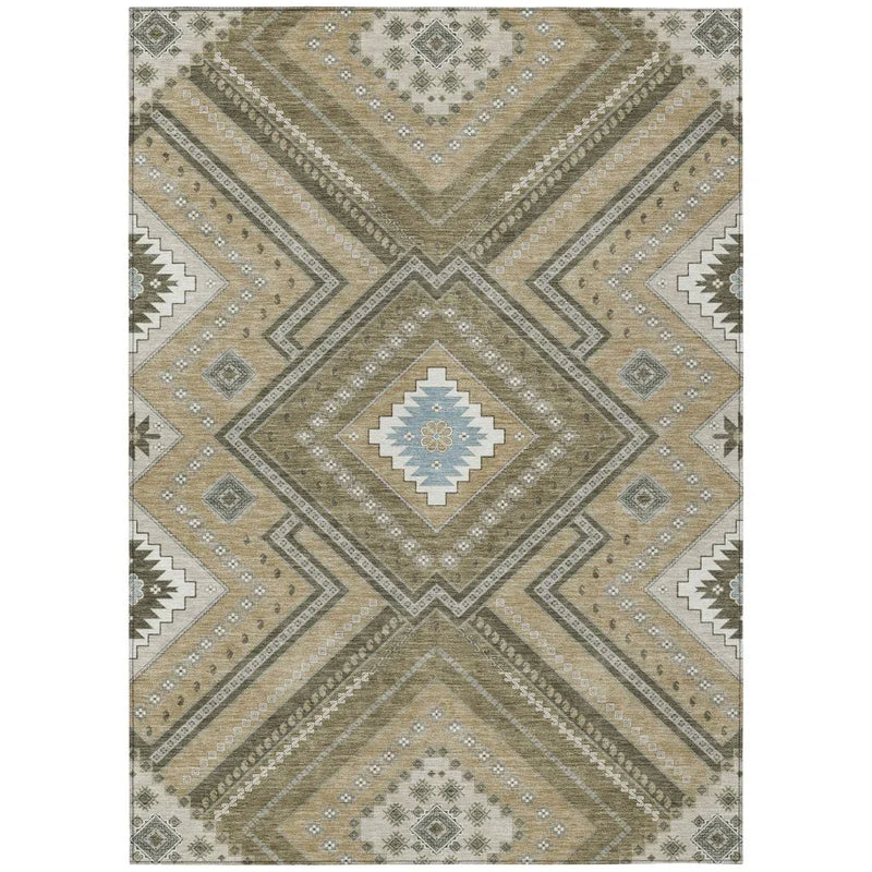 Solene Brown Washable Rug Tribal UV Outdoor Safe Features: