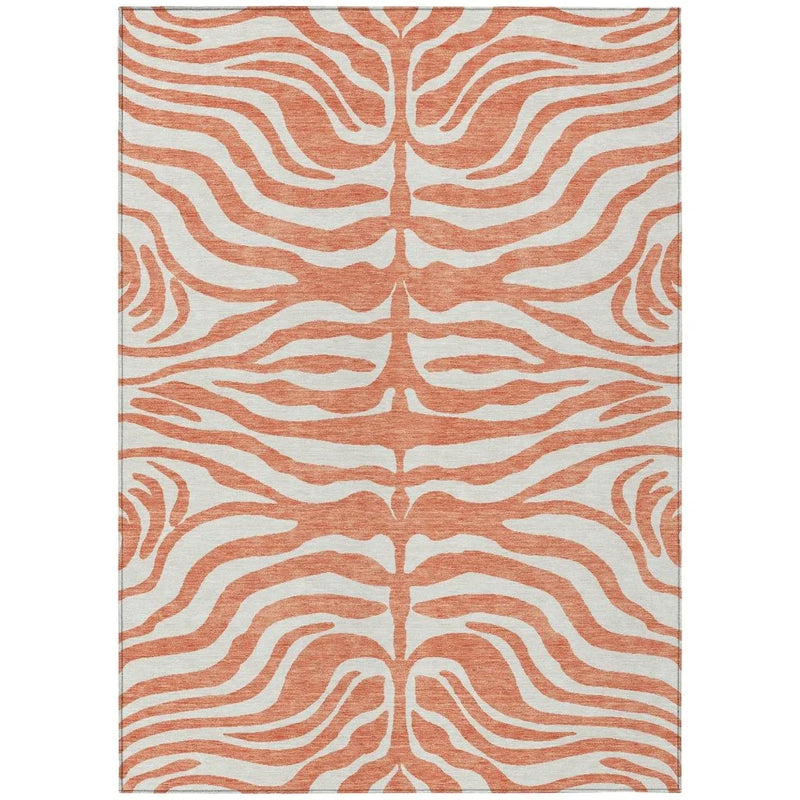 Embrace the exotic with the Solstice Coral Washable Rug, featuring a striking zebra-patterned design that adds a touch of animal print flair to any setting. Whether indoors or outdoors, this rug brings transitional styling to life, seamlessly blending with various decor styles. Its coral hue enhances the visual appeal, making it an eye-catching centerpiece in any room or patio. Crafted with polyester, the rug offers a durable and resilient texture that is both family and pet-friendly.