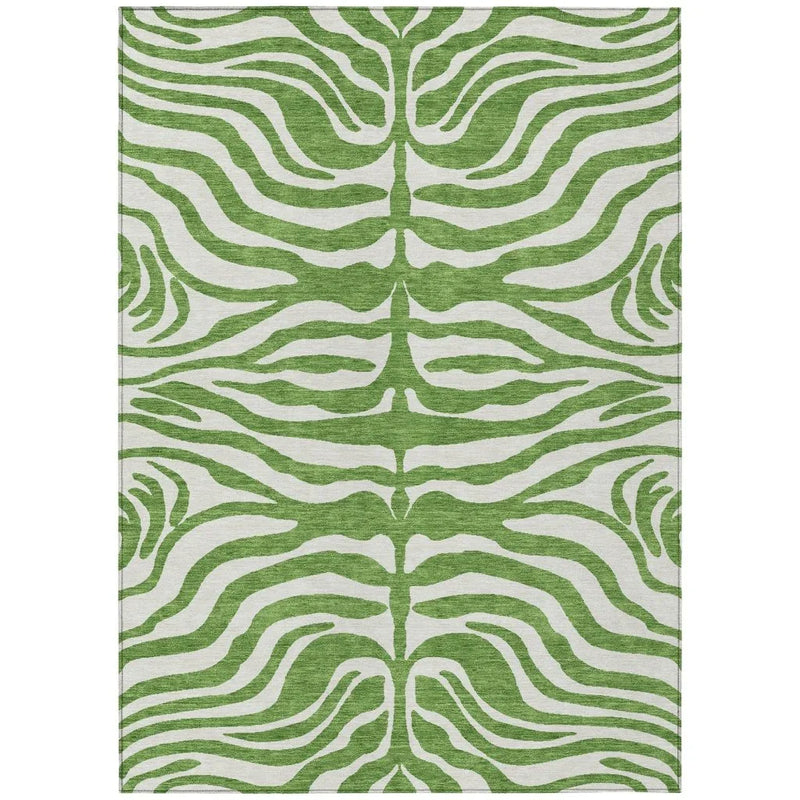 Transform any room with the vivid charm of the Solstice Green Washable Rug. This zebra-patterned rug brings a touch of exotic elegance into your home, effortlessly blending with a variety of decor styles. Its unique design captures attention and adds a pop of personality to any space. Made from durable polyester, it is designed to withstand the rigors of both indoor and outdoor environments while maintaining its aesthetic appeal.