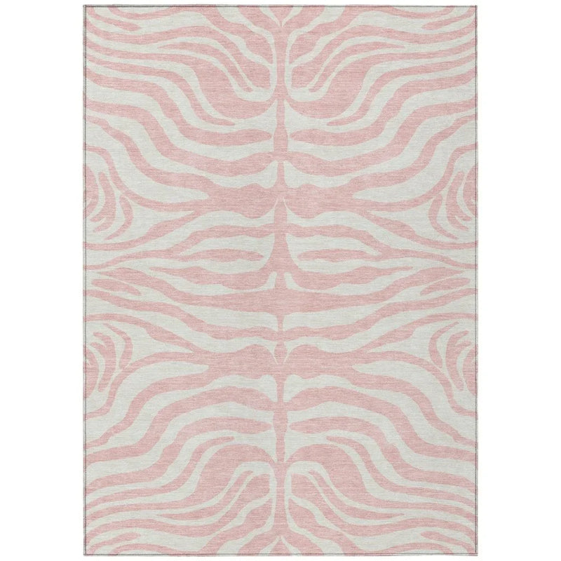 Elevate your living space with the Solstice Pink Washable Indoor-Outdoor Rug. Its zebra-patterned design adds a touch of wild elegance, making it an excellent choice for those who appreciate transitional styling with an animal print flair. This rug serves as a stunning focal point, seamlessly enhancing any room's decor. Crafted from durable polyester, it's designed to withstand both family and pet activities, ensuring longevity and resilience in any environment.