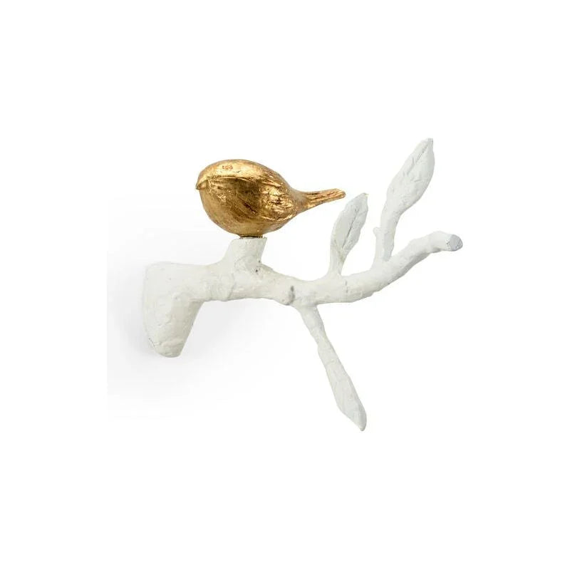 Bring an element of nature into your living space with this elegant wall decor piece. Featuring a beautifully crafted songbird finished in antique gold, perched delicately on a white and black branch, the Tweet adds a touch of serenity to any room. Its minimalist design and organic shape make it a versatile choice, perfect for a screened-in porch or a bright sunroom. This unique decor item is not just an ornament but a piece of art that complements both modern and classic interiors. Crafted with attention to detail, the Tweet II is inspired by the natural beauty found outdoors. The combination of the antique gold bird and the white branch creates a striking contrast, bringing out the fine details of the sculpture.