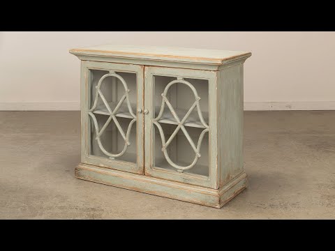 A soft greenish-grey Sage and Antique White finish adds inviting weathered color. Part of the Sonya collection, this artful chest combines cottage charm with eco-friendly sustainability.