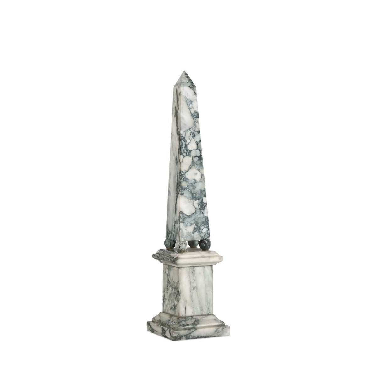 The Sorority Medium Obelisk is a French-inspired decorative accessory made of solid marble in a heavily mottled mix of green and off-white. Standing nearly 22 inches tall, the sculpture has a timeless presence; its natural stone patterning providing each piece with a unique character. Because it is made of a natural material, the surfaces of the stone may vary slightly from piece to piece.