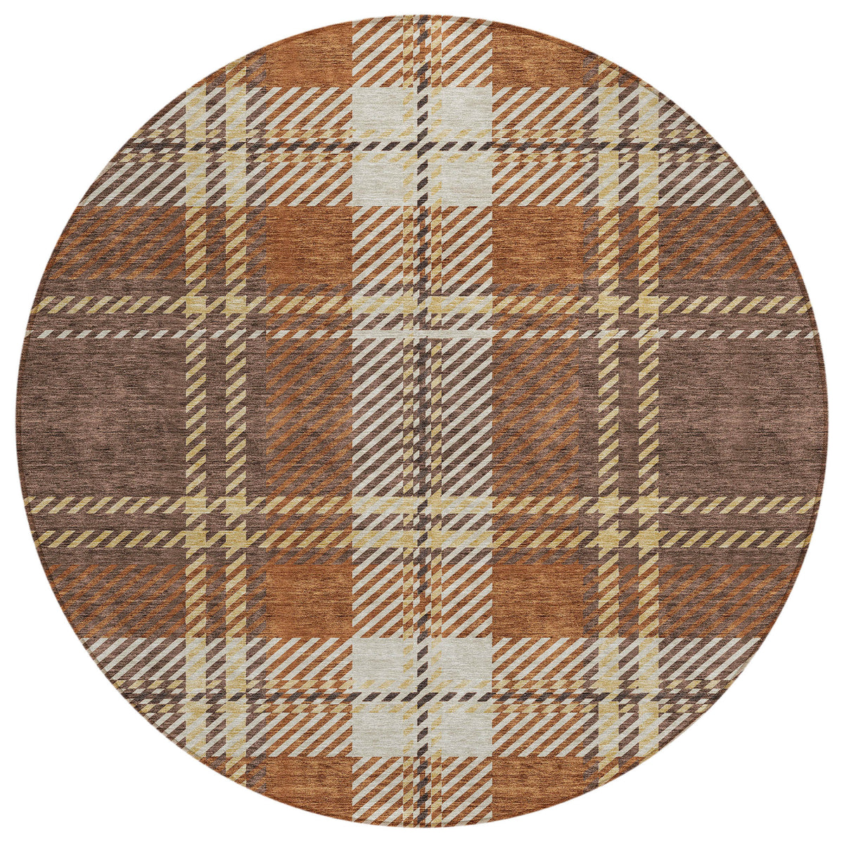 Enhance your home with the Spiral Whispers Chocolate Washable Indoor-Outdoor Rug. Designed with a classic plaid pattern, this rug brings a touch of elegance to any space. Its UV stabilization makes it perfect for both indoor and outdoor use, offering versatility and style. With an ultra-thin, non-skid backing, it dries quickly, making it ideal for busy homes with kids and pets. Made entirely from polyester, this rug is machine washable, adding to its convenience and practicality. Whether in a covered patio or a cozy living room, this rug adapts beautifully to various settings, providing comfort and charm.