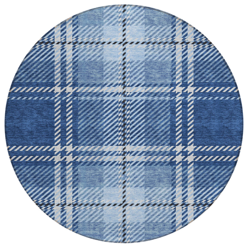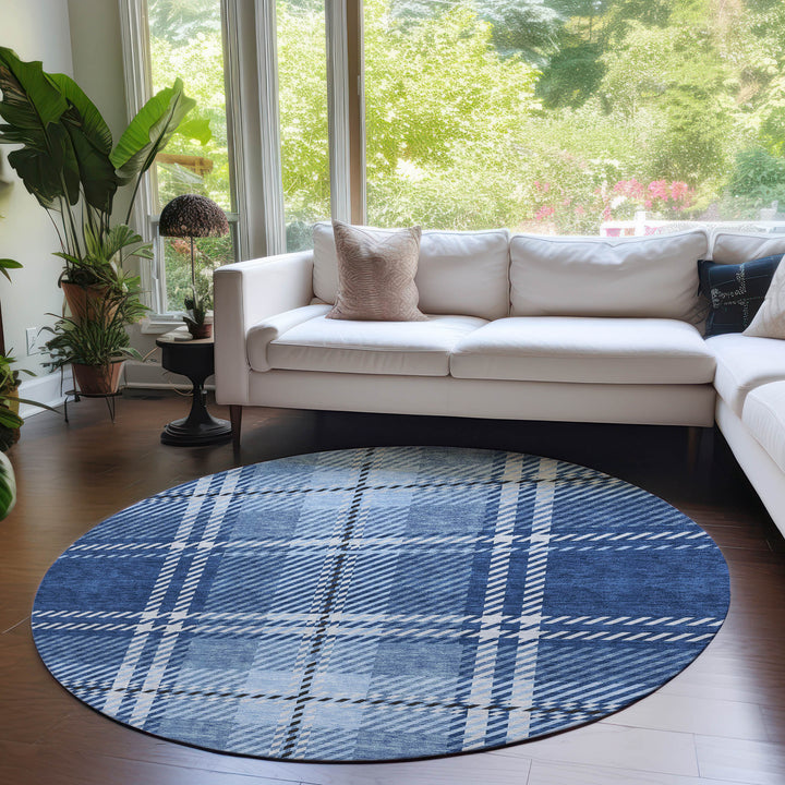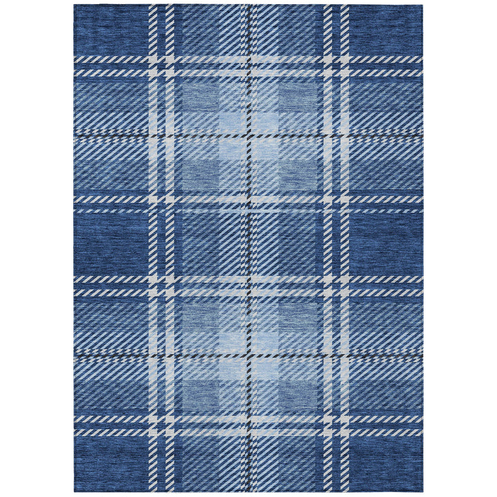 Bring elegance and function to your home with this stylish area rug. The Spiral Whispers Navy Washable Rug features a classic plaid pattern that blends seamlessly into transitional spaces. Its UV stabilization ensures durability whether used indoors or outdoors. Designed with an ultra-thin profile, it's practical for any room and easy to clean, as it’s machine-washable. Perfect for homes filled with pets and family activities, this rug offers both beauty and convenience. Crafted from 100% polyester, it withstands the elements while providing a soft, welcoming surface. Enhance your living space with this versatile and easy-care rug.