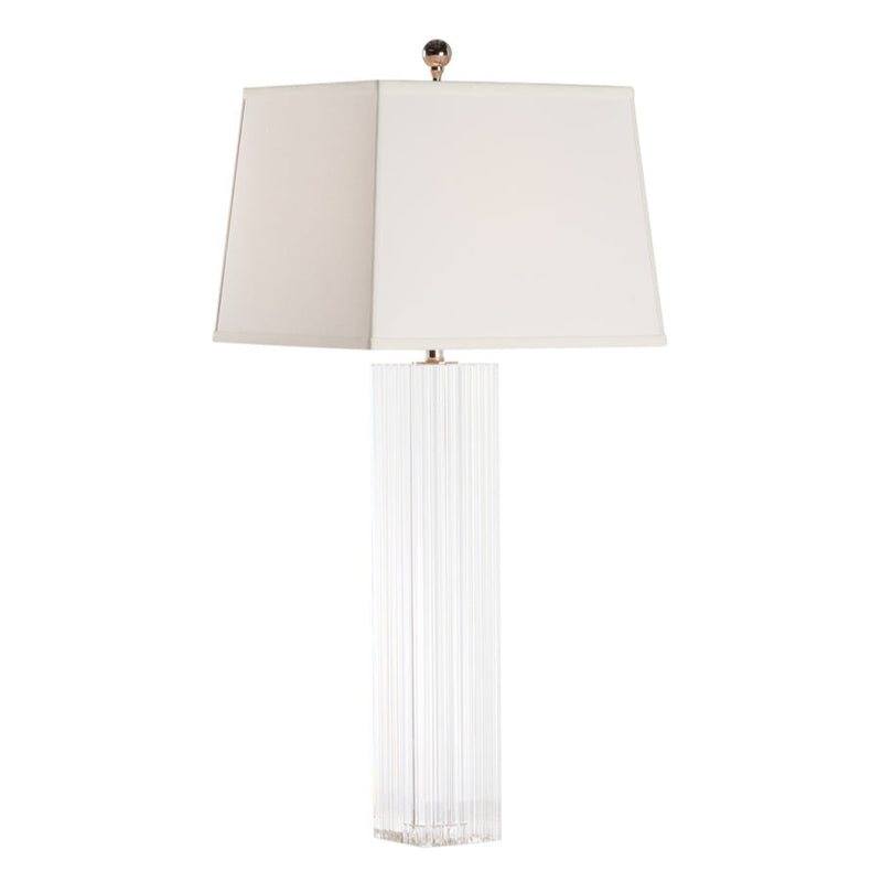 The Stanford Lamp is a stunning display of elegance and clarity. It features a tall, fluted crystal base that catches and reflects light with graceful precision. Its clean lines and tapered shade create a timeless silhouette, making it a sophisticated addition to both traditional and modern interiors. The lamp's clear color, combined with a rectangular shade, adds modern charm to any room. Perfect for a cozy reading nook or as a statement piece in a living room, it offers both style and functionality. The simple, yet striking design is sure to captivate anyone who appreciates fine craftsmanship.