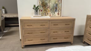 Experience the luxurious elegance of transitional style with the Stella 6-Drawer Double Dresser. Exquisitely crafted from durable oak wood and finished in a light honey hue, this dresser exudes timeless sophistication. Designed with brushed brass handles and feet, the spacious drawers feature full extension metal glides and a hold-in detent feature for easy and safe access. The Stella 6-Drawer Double Dresser by Essentials For Living epitomizes transitional style with its refined touch and ample storage space. Adorned with brushed brass accents, the light honey finish of this piece creates a stunning contrast, adding to its allure and charm. Measuring 66" wide, 20" deep, and 36" high, this dresser is both durable and elegant, thanks to its oak wood construction.