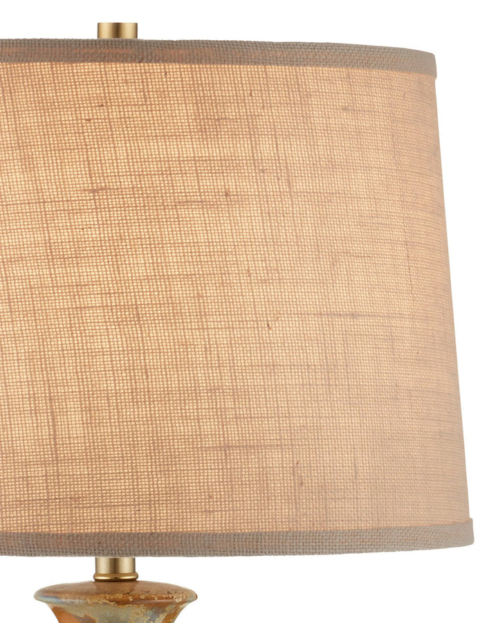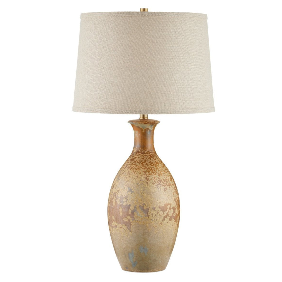 This lamp's ceramic base is complemented by an ivory-colored, beige fabric shade, which provides a soft and welcoming glow. Standing at a height of 31 inches with a diameter of 17 inches, it’s an ideal fit for side tables, nightstands, or desks. The vase-shaped design adds a touch of elegance to the overall look. Crafted with attention to detail, the Stellata Table Lamp not only serves as a functional lighting piece but also as an artistic statement in any space. Additionally, it is designed with foam at the base to protect your furniture from scratches and damage.