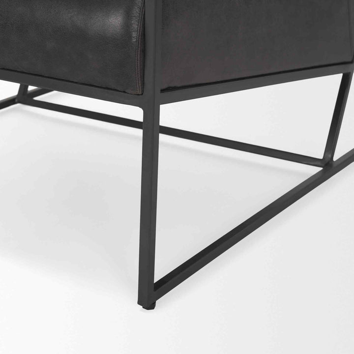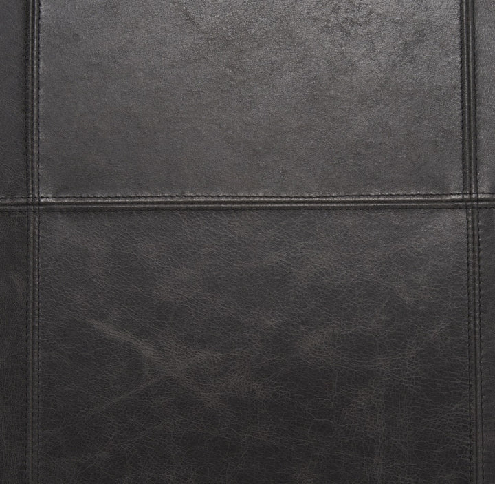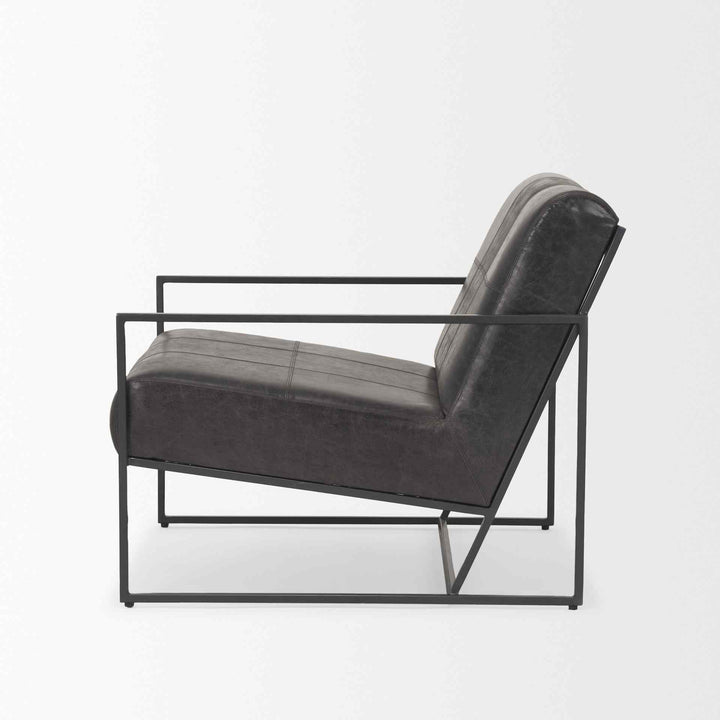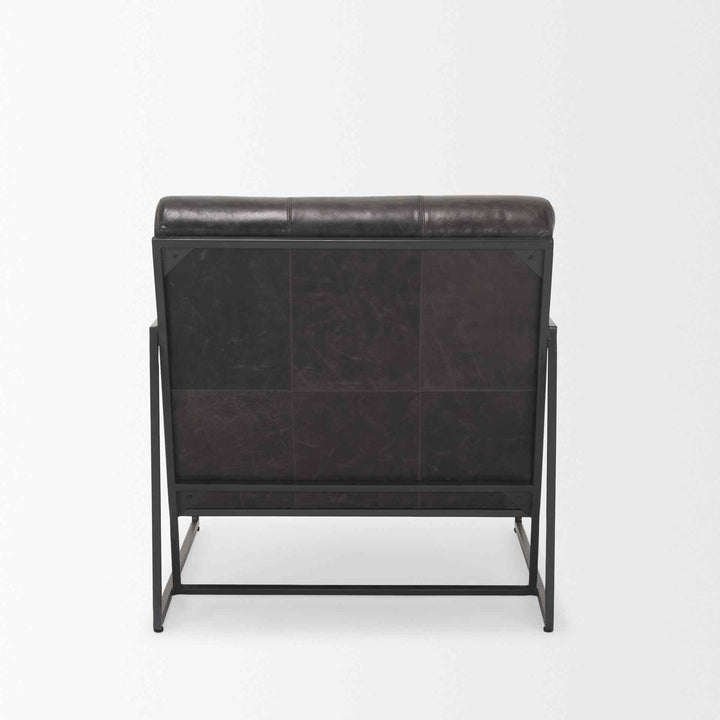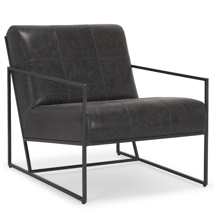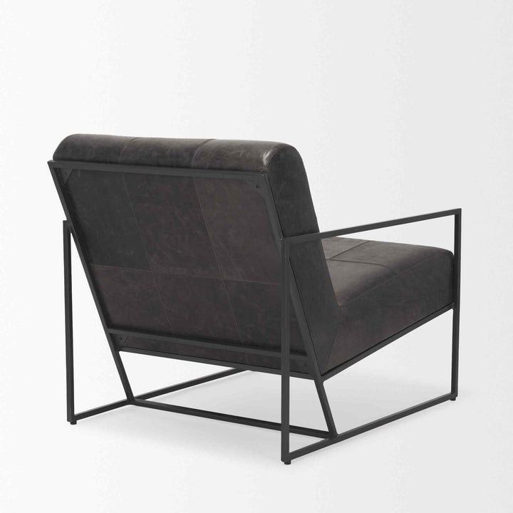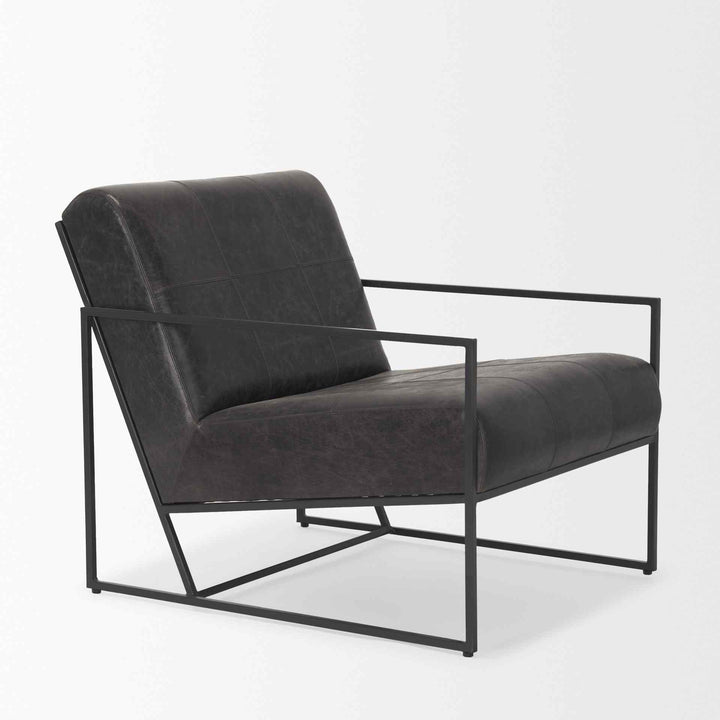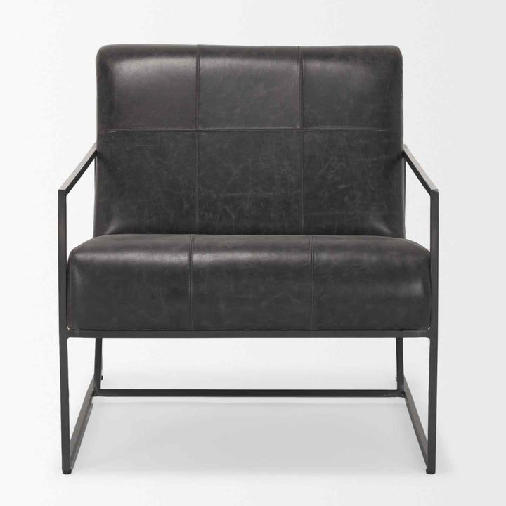 - The distinctive square patchwork pattern of Stratton, coupled with premium aged black-brown leather, crafts an accent chair brimming with character and charm.