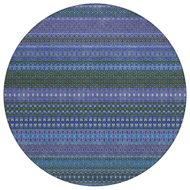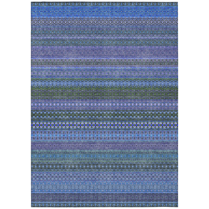 Stripes Blue Washable Rug With Non-Skid Backing Features: