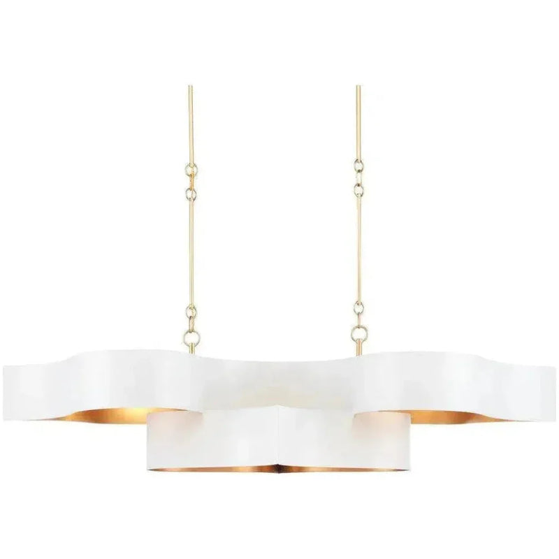 Sugar White Gold Leaf Grand Lotus White Oval Chandelier Features: