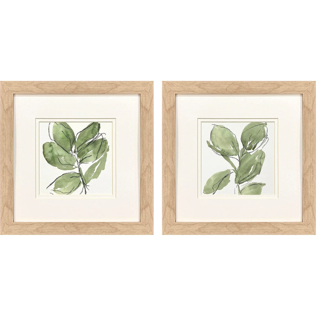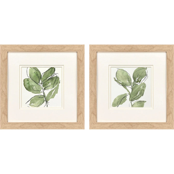 Transform your living space with the Summer Leaves S/2 Framed Wall Art With Glass Front. This set of two Framed Wall Artworks features charming green leaf illustrations on a crisp white background, perfect for those who appreciate a touch of nature in their decor. Crafted with a minimalist approach, these pieces fit seamlessly into any casual setting, offering a relaxed yet stylish vibe to your home. Each artwork is double matted in white, enhancing the visual depth and ensuring the leaves stand out beautifully. The frames are finished in a sleek, natural wood tone, adding a warm, earthy touch that complements the greenery.