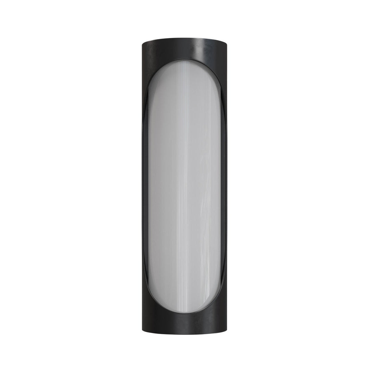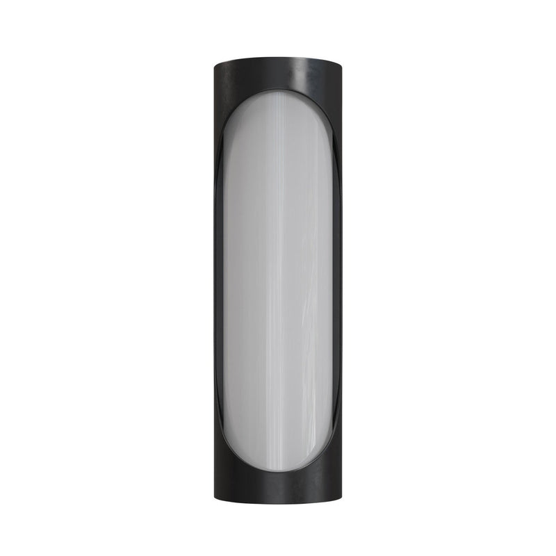 The Swale Small Outdoor Wall Sconce has a graphic silhouette with cut outs where illumination can escape. The front of the black sconce is covered with a milky white glass that illuminates uniformly when the integrated LEDs shine through it. The metal is powdercoated to make this outdoor sconce weather worthy.