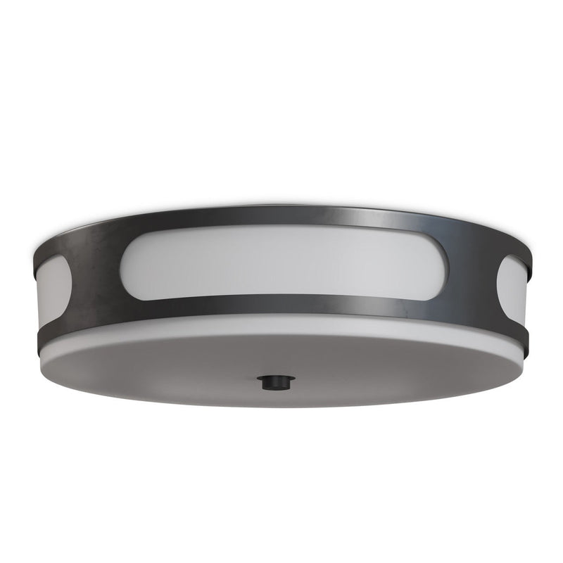The Swale Outdoor Flush Mount has a graphic silhouette with cut outs where illumination can escape. The sides of the black flush mount are covered with a milky white glass that illuminates uniformly when the integrated LEDs shine through it. The metal is powdercoated to make this outdoor flush mount weather-worthy.