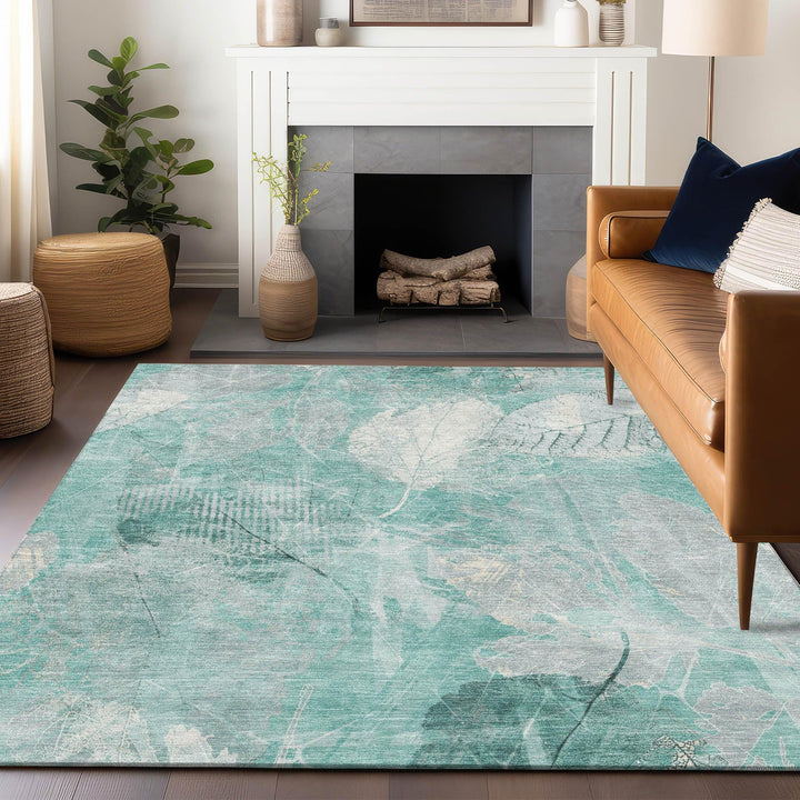 Bring the charm of nature into your home with this versatile rug, perfect for both indoor and outdoor settings. Its beautiful floral pattern, adorned with layered leaf designs, adds a touch of elegance to any space. Crafted from polyester, this rug is designed to withstand the elements, thanks to its UV stabilization. Whether you place it in a sunroom or patio, it maintains its vibrant teal color over time. Being machine washable, it offers the convenience of easy cleaning, making it a practical choice for households with kids and pets.