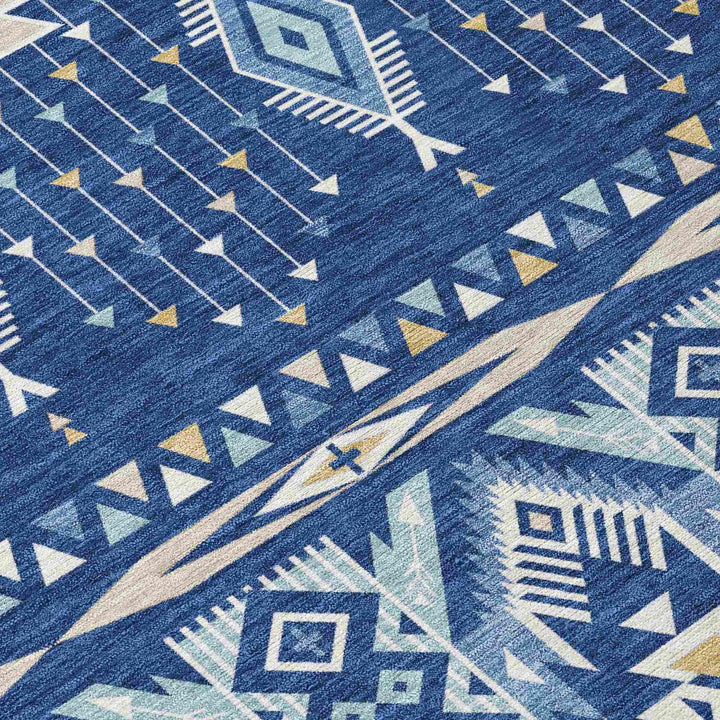 Transform your living space with the Taelien Blue Washable Rug. Its Aztec-inspired design brings a captivating charm with its flowing patterns and geometric motifs. Ideal for both indoor and outdoor settings, this rug is crafted from UV-stabilized fibers to ensure long-lasting color and durability. The non-slip backing eliminates the need for additional rug pads, providing a cost-effective solution while enhancing safety. Whether in your living room or patio, this rug offers a seamless blend of style and practicality.