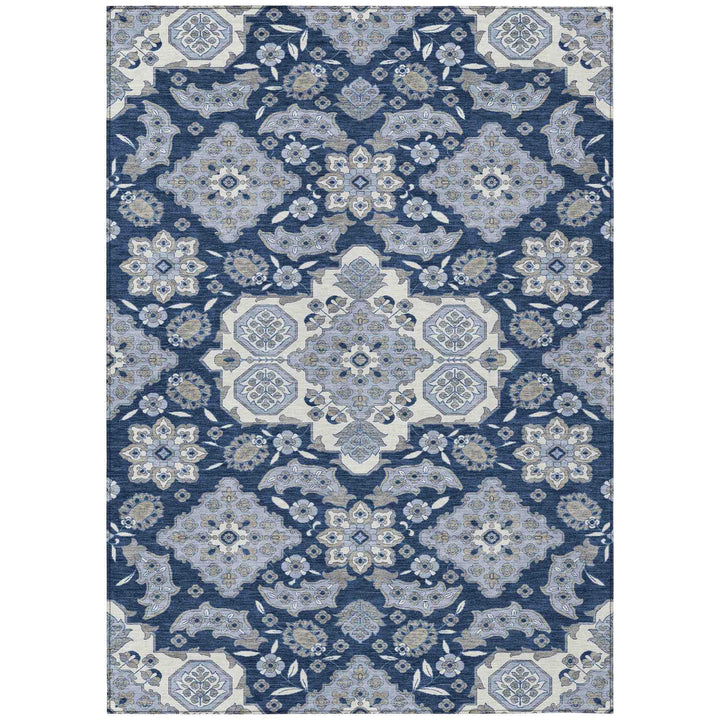 The Taelira Blue Washable Indoor-Outdoor Rug is designed to bring a modern touch to any space, with a pattern inspired by global designs. Its versatile style makes it perfect for both indoor and outdoor settings. Made from durable polyester, it stands up to busy households, including those with kids and pets. The rug features UV stabilization, ensuring it maintains its vibrant color, even when used outdoors. Its ultra-thin profile and integrated non-skid backing eliminate the need for an extra rug pad, making it a convenient choice for any area.