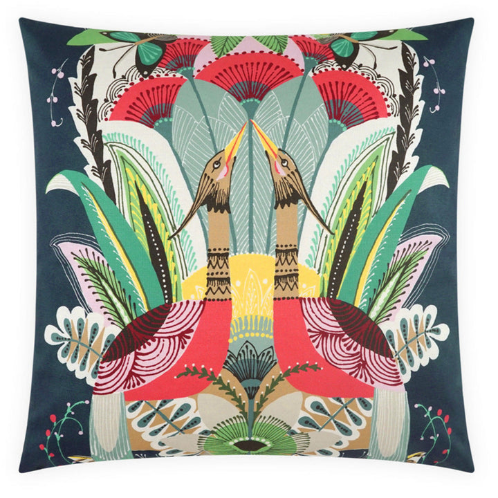 The Talavera Pillow is a delightful addition to any room, offering a splash of color and whimsy with its vibrant design. Handcrafted in California from 100% cotton, this pillow features a lively mix of navy and multi-colored floral and animal motifs on the front, with a soft ivory back. The removable cover and insert make it easy to clean and maintain, while the hidden zipper adds a sleek touch. Perfect for adding a pop of color and personality to your space, its handcrafted nature means each piece is unique, making it both a functional and decorative piece.