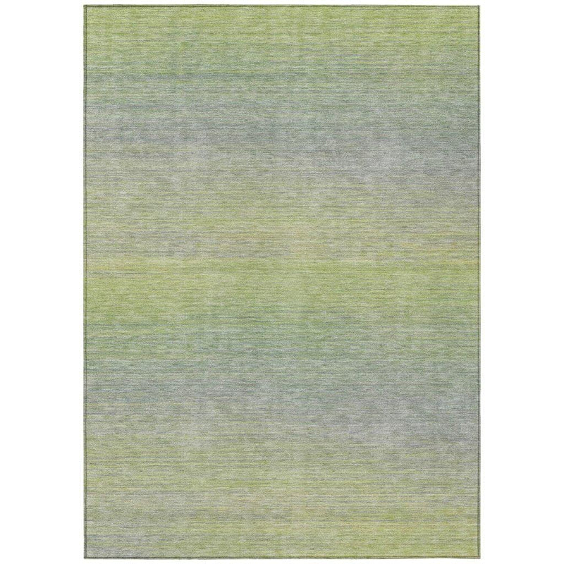 Embrace the fusion of style and practicality with this green washable rug. The striped pattern, featuring thin horizontal lines with broken intervals, introduces a modern flair to any transitional space. Its sleek look offers versatility, allowing it to seamlessly fit into a variety of settings. Designed with UV-stabilized fibers, this rug is perfect for both indoor and outdoor use, ensuring durability even in direct sunlight. Whether placed in a living room or on a patio, it stands as a testament to elegance and functionality.